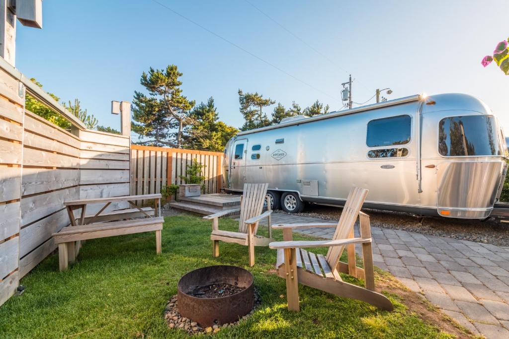 Walk to the beach from this vintage Airstream resort. Kid and Pet friendly, well appointed accommodations welcome all types.